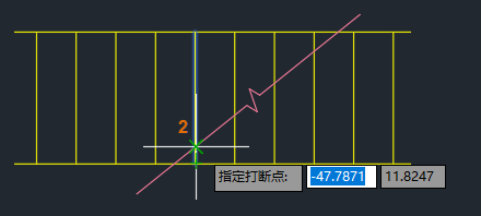 3. 使用“INTersection”对象捕捉,选择打断线和竖线的交点。
