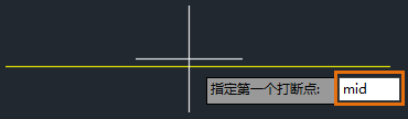 5. 使用“MIDpoint”对象捕捉,并将第一个打断点指定为直线的中点。