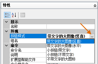 - 在“特性”窗格右侧的“外观”下,单击“按钮样式”下拉列表,然后选择“带文字的大图像(竖直)”。