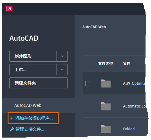 AutoCAD Web 应用程序支持以下第三方云存储提供商,因此如果已将 DWG 文件存储在云中,可以轻松访问并编辑它们: