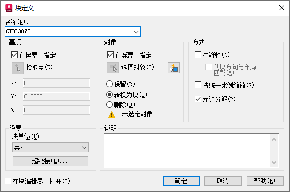 - 在“块定义”对话框中,指定以下图像中显示的值: