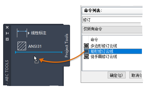 - 在“命令”列表中,将“矩形修订云线”命令拖放到工具选项板上。