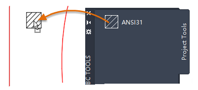 - 按住鼠标右键,将图案填充对象拖放到工具选项板上。