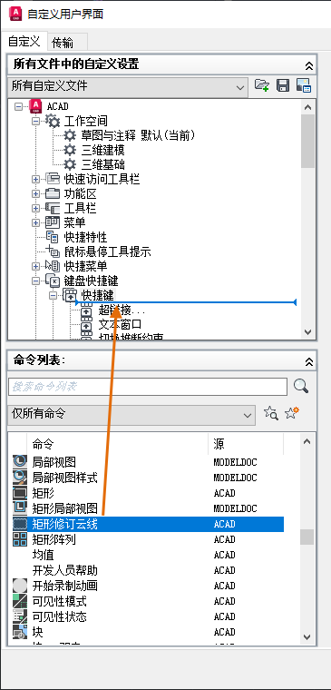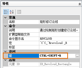 在自定义 (CUIx) 文件中定义快捷键。在本例中,您将定义一个快捷键,以运行带“矩形”选项的 REVCLOUD 命令。