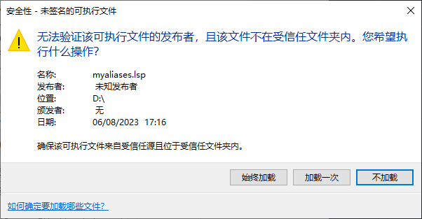 “受信任的位置”。否则,每次 AutoCAD 尝试加载该文件时,您都会看到此警告。