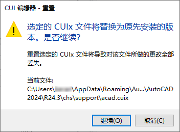 - 重置 ACAD.CUIX(AutoCAD LT 的 ACADLT.CUIX)- 将 CUIx 重置为其初始安装状态。