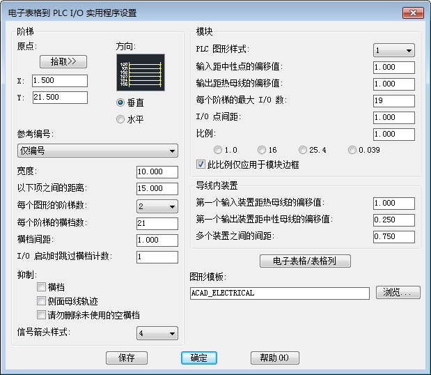 AutoCAD Electrical toolset 将根据 PLC 电子表格中的信息创建一组 PLC I/O 图形。阶梯、模块、导线内元件和导线将会自动插入。