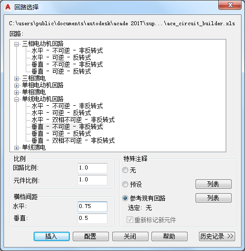 即会插入回路并应用单线回路中的元件值。电动机符号将接收到相同的目录值和马力额定值。主隔离开关将接收到开关和熔断器的相同额定值。插入后,电动机符号将接收到在单线回路上修改的值。