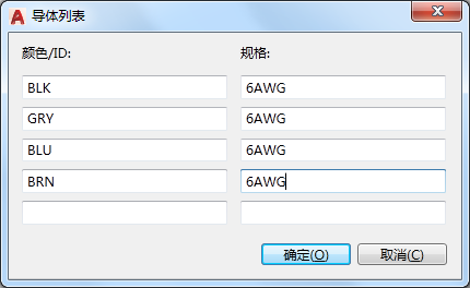 单击以打开“导体列表”对话框,从中可以添加导体并为每个导体定义颜色和规格。