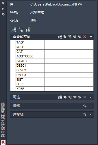 将属性 TAG1、DESC1、LOC、INST、FAMILY、MFG、CAT 和 ASSYCODE 添加到自定义符号。