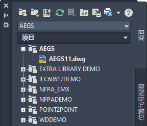 “项目管理器”将列出“AEGS”文件夹下的文件。此后,您添加的新图形将添加到绘图次序的末端。您现在即可访问完成本书中的练习所需的文件。