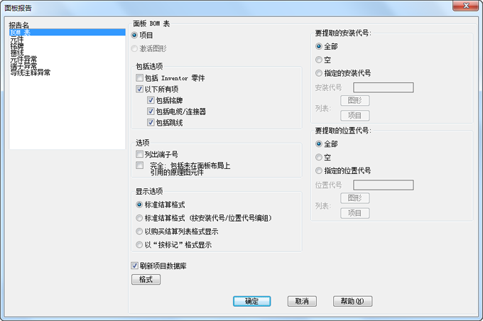 指定是处理项目、激活图形还是选定对象。如果选择了项目,则某些报告会提供一个选项以选择要处理的图形。