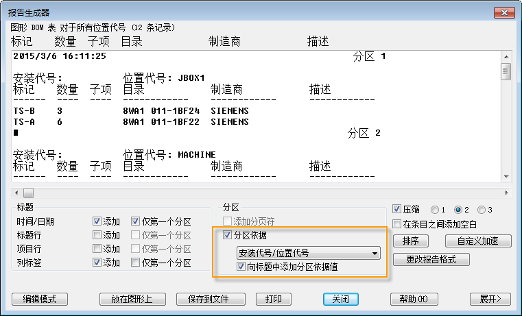 选择“分区依据”并单击“放在图形上”之后,“表格生成设置”对话框中的“应用分区依据”选项将可用。此选项可以基于分区依据为每个分区插入一个表格对象。