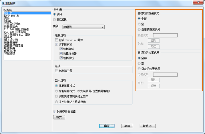 可以使用安装代号和位置代号过滤器控制提取的信息。例如,如果为所有客户提供的元件指定目录代号“CUSTOMER”,则可以使用该位置代号过滤任何报告。使用报告对话框的“指定的位置代号”和“指定的安装代号”区域可以按特定值过滤报告。