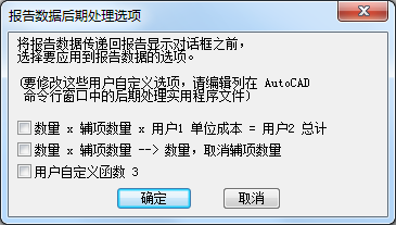 每种报告类型都有关联的 LISP 文件 (.lsp) 和对话框定义文件 (.dcl),可以对这些文件进行自定义以后处理报告数据。在运行报告时,数据将显示在“报告生成器”对话框中。如果单击“自定义加速”,关联的 .dcl 文件中定义的对话框将会显示。对话框上每个选项的实际处理在关联的 .lsp 文件中进行定义。