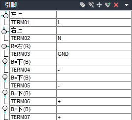 接线属性可以具有相关的端子文字属性 TERMxx 和端子描述属性 TERMDESCxx。“xx”是一个两位数(从 01 开始),用于与对应的 X?TERMxx 接线属性匹配。
