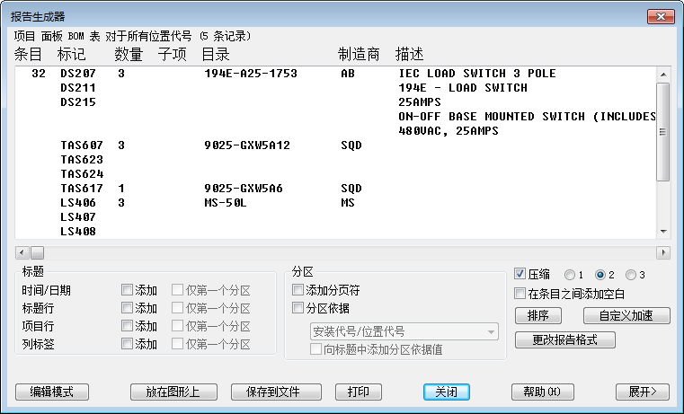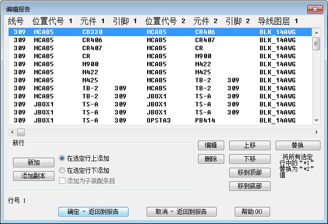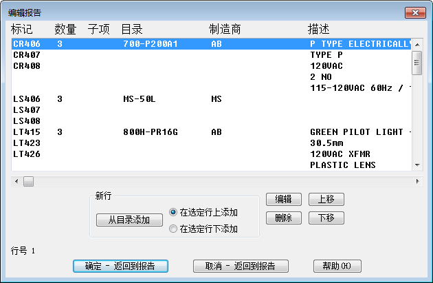 先修改报告,然后再将修改好的报告插入到图形中或者保存到文件。可以在报告中上移或下移数据、从目录中添加行以及删除行。