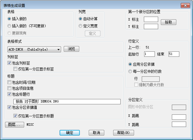 - 指定从一个表格分区末尾到下一个表格分区开头的 X 和 Y 距离。当同一图形中有多个分区时使用这些值。