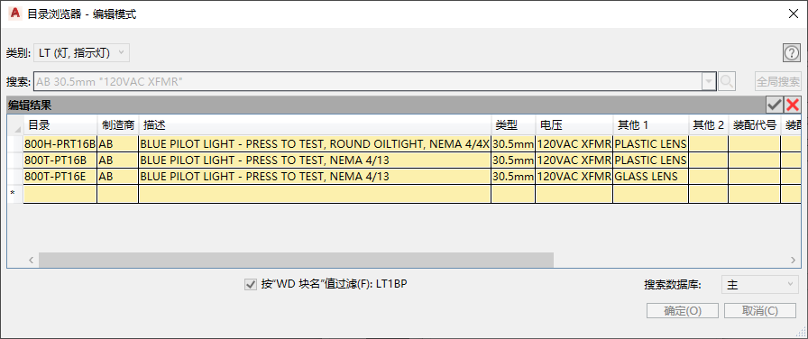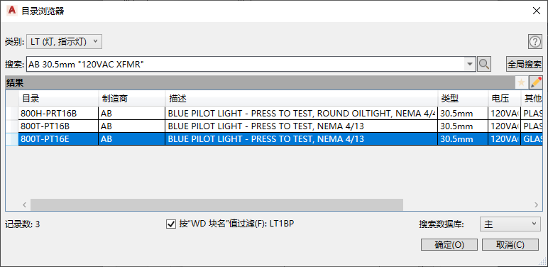 - 输入搜索字符串“AB 30.5mm "120VAC XFMR"”,然后单击