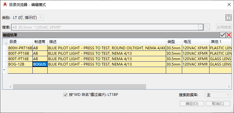 随 AutoCAD Electrical toolset 提供了样例目录信息。这些信息保存在 Access 数据库文件 (.mdb) 的表格中,这些表格中填充了样例供应商数据。