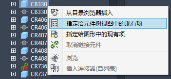 - 在元件树视图中,选择要与 Inventor 零件链接的 Electrical 元件。元件树视图将自动刷新以显示链接的元件。