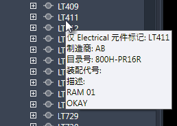 在元件树中不同装置类型以不同方式表示。插入电气元件时,建议使用唯一的名称(安装代号、位置代号、元件标记)、引脚号和端子号。例如,如果图形中有电缆标记,且有重复的电缆标记值,那么您可能会在元件树视图和“连接”选项卡中遇到异常元件行为。对于“位置视图”中的端子和电缆标记,上述情况更常见。