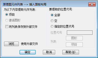 - 在“原理图元件列表 -- 插入面板布局”对话框中,验证: