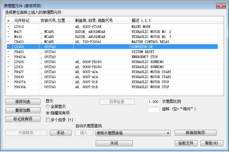 在“原理图元件(激活项目)”对话框中,请注意仍然必须放置主控制继电器。