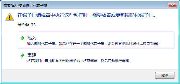 注: 必须插入或重新编译图形化端子排,否则不会保留备用端子和附件。