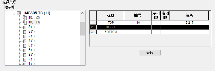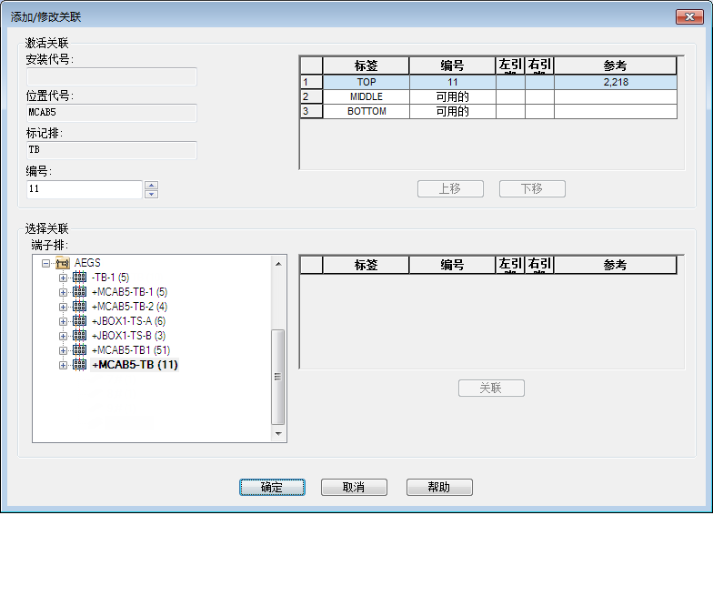 单击“关联”之后,中等级别将使用该对话框中“激活关联”区域的栅格中的端子号进行更新。