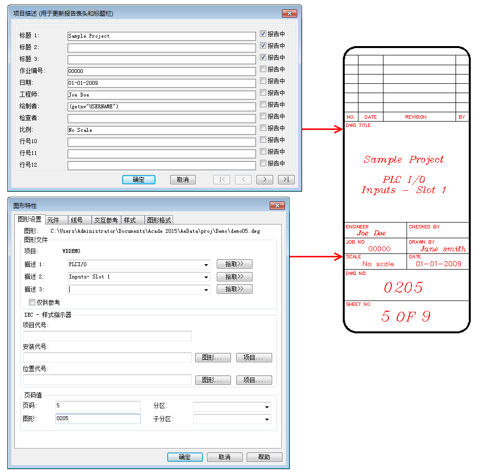 如果您的图形标题栏包含具有属性的 AutoCAD 块,则 AutoCAD Electrical toolset 可以更新该图形标题栏。
