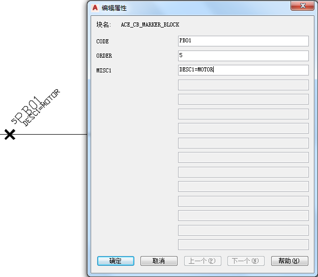 - 对要预定义的每个属性值重复上述操作。此电动机符号上每个属性的 ANNO_CODE 和 CODE 值应相同。