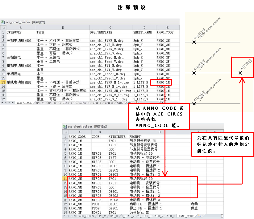 - PROMPT = 电动机 - 位置代号。这是在“注释预设”对话框中使用的文字。如果您在插入回路时选择“预设 - 列表”按钮,则会显示此对话框。