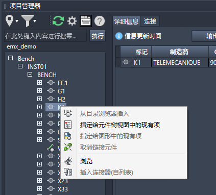 在元件树视图中的元件上单击鼠标右键,然后选择“浏览”。