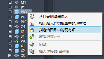 在激活图形中,选择要与 Inventor 零件链接的电气元件。元件树视图将刷新以显示链接的元件。