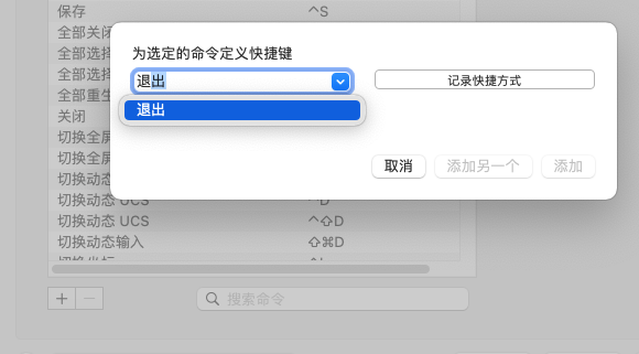 - 开始键入要为其指定快捷键的命令名。从下拉列表中选择一个命令。