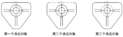 很难选择彼此靠近的对象或直接相互重叠的对象。该示例显示了位于拾取框内的两条直线和一个圆。