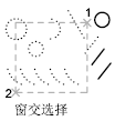选择区域(由两点确定)内部或与之相交的所有对象。窗交显示的方框为虚线或高亮度方框,这与窗口选择框不同。