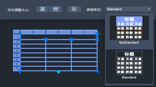 在“特性检验器”上,从“表格”部分的“表格样式”下拉列表中选择一种表格样式。