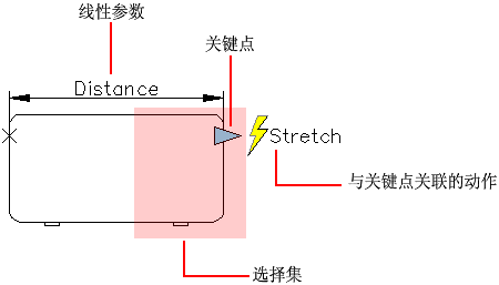 动作定义在操作动态块参照的夹点时,该块参照中的几何图形将如何移动或更改。