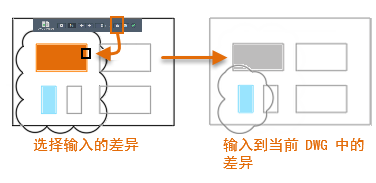 在“DWG 比较”面盔中,可以将比较图形中的差异输入到当前图形中。仅比较图像中存在差异的对象才能输入到当前图形中。