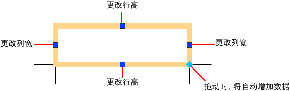 更改表格的高度或宽度时,只有与所选夹点相邻的行或列将会更改。表格的高度或宽度保持不变。要根据正在编辑的行或列的大小按比例更改表格的大小,请在使用列夹点时按 Ctrl 键。
