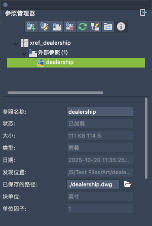 管理附着到当前图形的外部参照。