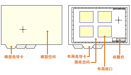 布局内的区域称为图纸空间,可以在其中添加标题栏,显示布局视口内模型空间的缩放视图,并为图形创建表格、明细表、说明和标注。