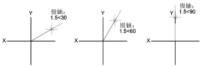 You can use polar tracking to track along polar angle increments of 90, 60, 45, 30, 22.5, 18, 15, 10, and 5 degrees, or you can specify different angles. The following illustration shows the alignment paths displayed as you move your cursor 90 degrees with the polar angle increment set to 30 degrees.