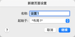 指定新建页面设置要使用的基础页面设置。单击“继续”,将显示“页面设置”对话框以及所选页面设置的设置,必要时可以修改这些设置。