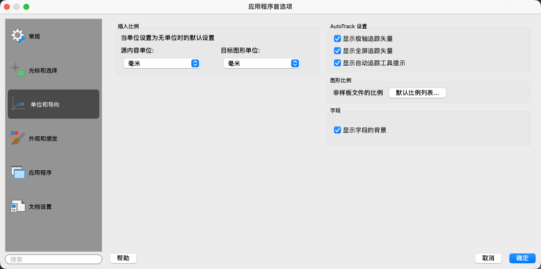 控制插入块或参照对象时使用的单位,以及启用哪些绘图导向。