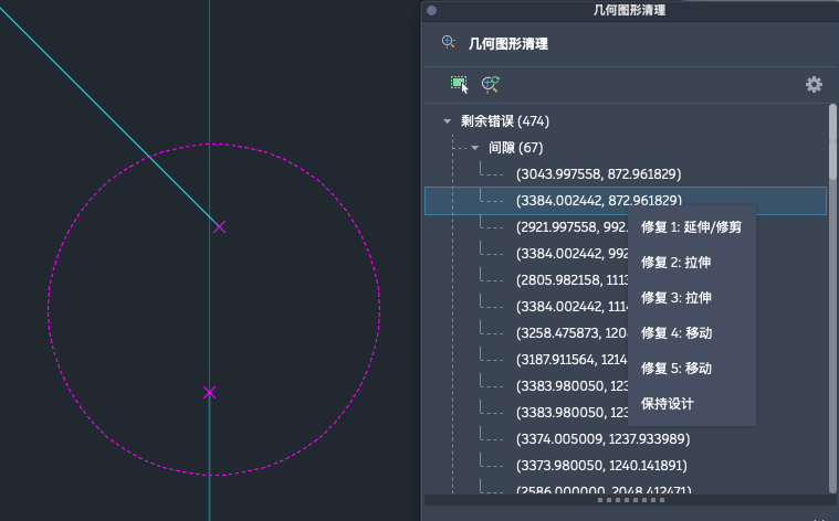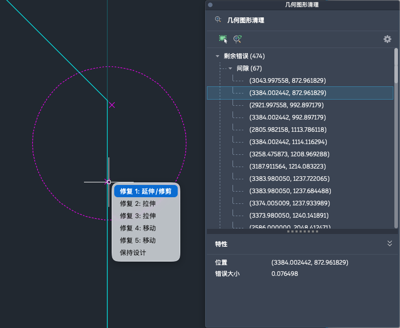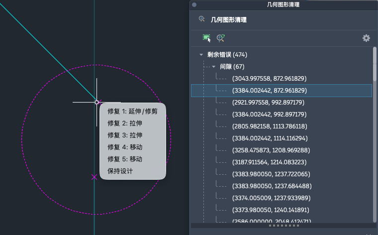 “几何图形清理”会扫描图形中的选定对象,以帮助您查找并修复几何错误。