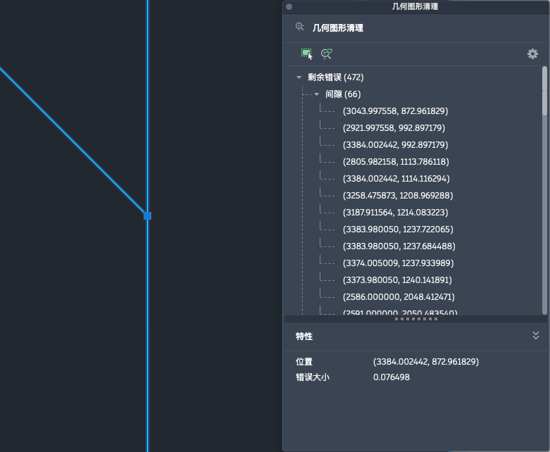 提示: 在“几何图形清理”工具栏上,单击“自动缩放导航”按钮以更好地查看错误。