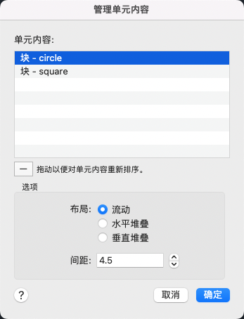 从“表格单元”面盔中选择“管理单元内容”,以从单元中删除块或管理单元内的多个块。